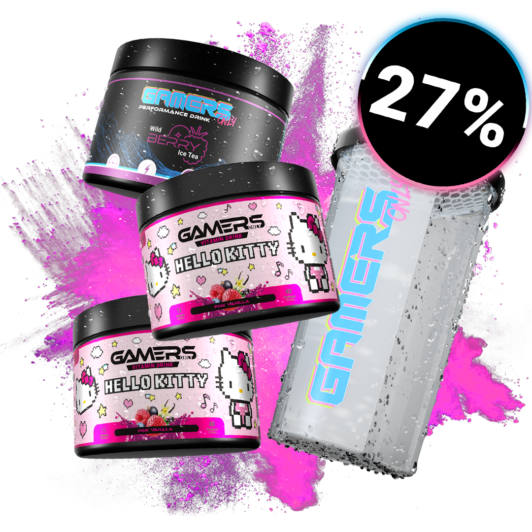 Hello Kitty Fans aufgepasst! Das Hello Kitty Bundle versorgt dich mit 2 x Hello Kitty Vitamin Drinks, einem Performance Drink und unserem Classic XL Shaker Powerful Pink zum unschlagbaren Vorteilspreis! Erlebe unsere einzigartige Performance-Formel mit Koffein, L-Tyrosin und Vitaminen in der Sorte WILD Berry Ice Tea und lass dir den Tag versüßen von zweimal Vitamin Drink Hello Kitty PINK Vanilla. Perfekt für jeden echten Fan versorgen sie dich bei Zero Zucker und Qualität Made in Germany mit maximaler Energie und Fokus für jede Situation. Sie wurden von Ernährungsexperten für dich entwickelt und sind dabei echte Geschmacksbomben!