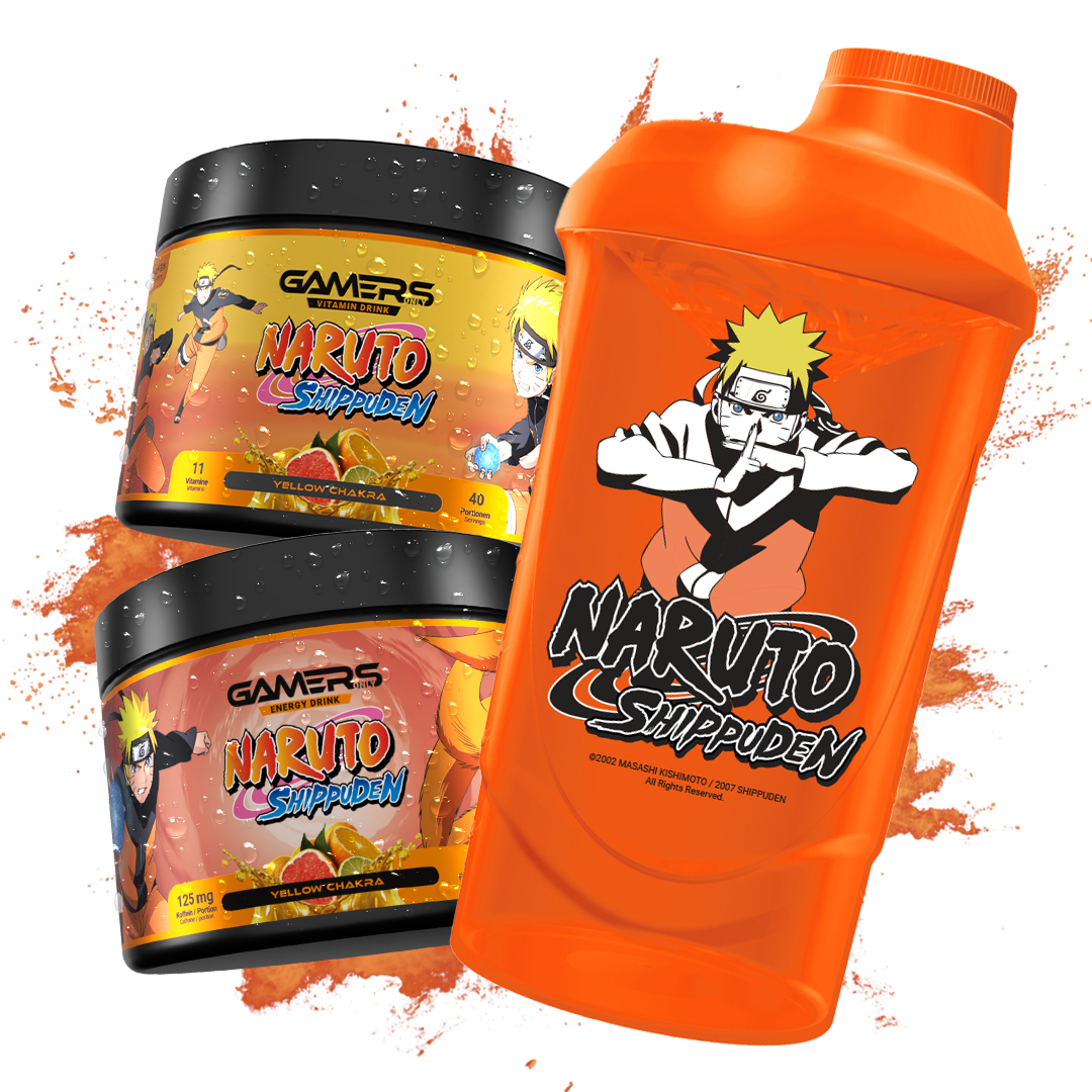 Naruto Fans aufgepasst! Das Natuto Bundle versorgt dich mit eimem Naruto Performance Drink, einem Naruto Vitamin Drink und unserem Naruto Shaker! Erlebe unsere einzigartige Performance-Formel mit Koffein, L-Tyrosin und Vitaminen in der Sorte YELLOW Chakra oder lass dir den Vitamin Drink schmecken ohne Koffein. Perfekt für jeden echten Fan versorgen sie dich bei Zero Zucker und Qualität Made in Germany mit maximaler Energie und Fokus für jede Situation. Sie wurden von Ernährungsexperten für dich entwickelt und sind dabei echte Geschmacksbomben!